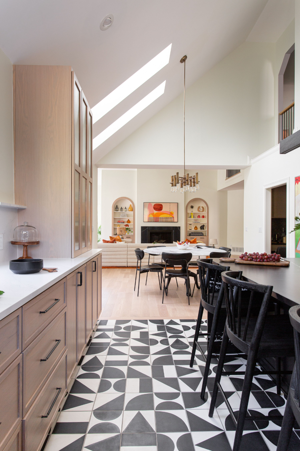 Kitchen with Casual Dining + Living Room beyond for private residence